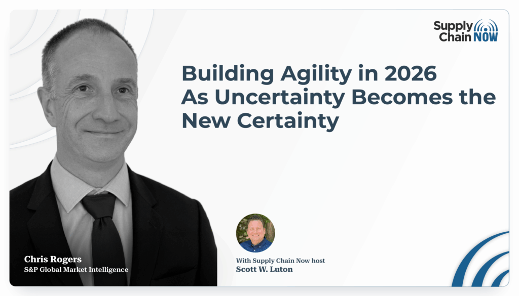 In a year defined by trade turbulence, rapid innovation, and record levels of uncertainty, global supply chains are being tested like never before. From shifting tariff policies to evolving manufacturing strategies and breakthrough technologies, 2025 has challenged leaders to balance agility with long-term vision. In this episode of Supply Chain Now, host Scott Luton sits down with Chris Rogers, Head of Supply Chain Research at S&P Global Market Intelligence, to unpack the current state of global supply chains and what lies ahead. Drawing on more than 25 years of experience across energy, finance, and logistics, Chris shares why agility and data-driven visibility are now critical to global enterprise success. Scott and Chris discuss how organizations are adapting to ongoing trade volatility, the growing importance of supply networks, and the technologies reshaping decision-making, from AI-driven workflows to high-dexterity robotics. They also highlight key insights from the 2026 Supply Chain Outlook, including trade liberalization trends, changes in shipping capacity, and the renewed focus on reshoring. This episode is hosted by Scott Luton, and produced by Trisha Cordes, Joshua Miranda, and Amanda Luton. Additional Links & Resources Check out all the great resources and information mentioned during the show: Download the…