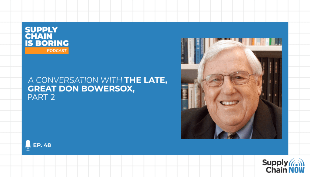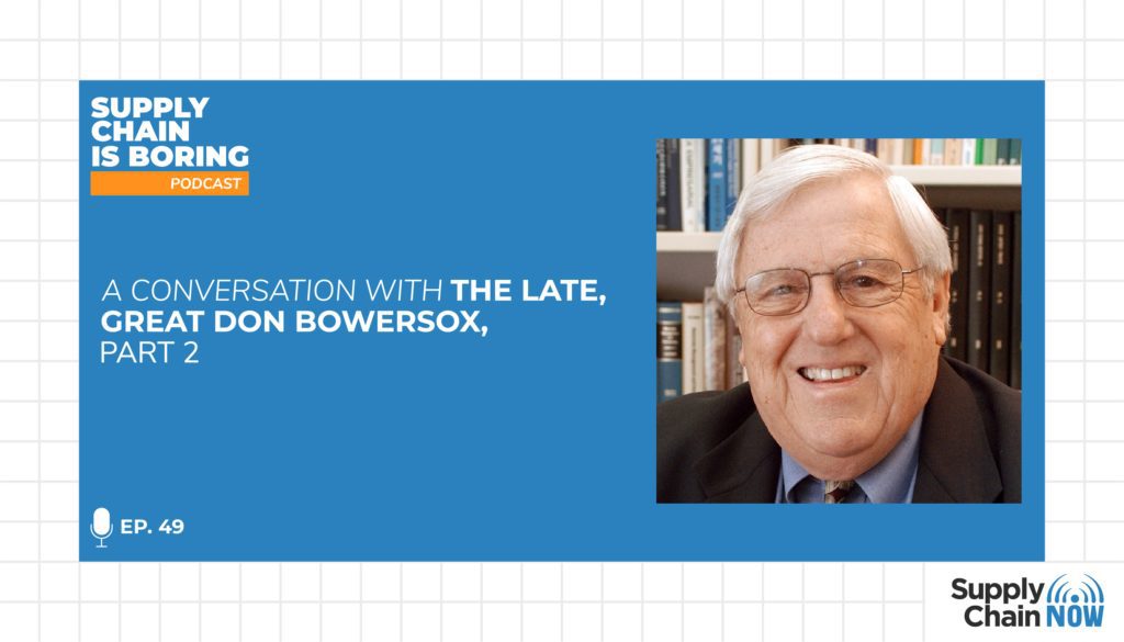 James R. Stock is a University of South Florida Distinguished University Professor and Frank Harvey Endowed Professor of Marketing. He has interviewed many of the greatest minds in transportation logistics, a practice area we call supply chain management today. He shared those interviewed with Chris Barnes to be republished as part of the Supply Chain is Boring program. In this interview, Stock speaks with Don Bowersox, one of the most well-known and influential supply chain management academics in the world, about the influencers along the path of his life’s journey and the advice he would give new Ph.D.’s today if he could. Listen in to learn more about this important thought leader in supply chain management.