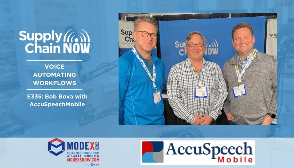 “The thing is, when you get an opportunity to really partner with your customer, and you see their workflows, you see where the bottleneck is.” – Robert Bova, President and CEO of AccuSpeechMobile Voice directed picking is nothing new – employees follow prompts from a device or application to select and put together orders. But voice automated workflows present a much bigger opportunity. They can increase the productivity of the workforce, minimize human errors, and save significant time by directly altering the workflows themselves. Robert (Bob) Bova is the President and CEO of AccuSpeechMobile. Their solutions are device based, meaning that people can interact with their solution through either spoken commands or push button controls. It is also possible to integrate their solution with intelligent scanners, and network connections are not required to use the solution. In this interview, Bob Bova speaks with Supply Chain Now Co-hosts Greg White and Scott Luton about: The sheer impact to be gained when increasing capacity and throughput – even incrementally – on each order that has to be picked The ability to onboard seasonal employees via technology, rather than pairing them with permanent employees The advancements he continues to see, both in…