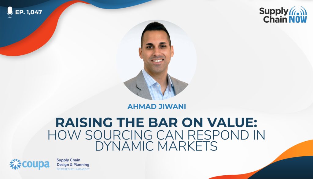 As disruptive events persist, buying organizations must ensure that pricing, supply, and capacity remain stable across the supply chain. This requires sourcing teams to drive greater throughput and decision making under increased workload and event complexity, creating their toughest state of play in many years. Fortunately, sourcing leaders are uniquely positioned to create new sources of value by combating persistent market pressures and building resilience amidst volatility. In this episode, created in collaboration with a live Supply Chain Now audience, co-hosts Scott Luton and Greg White are joined by Ahmad Jiwani, Director, Product & Segment Marketing at Coupa, to discuss: • How sourcing and procurement professionals are being asked to lead during these challenging economic times • How a well-run strategic sourcing program can help companies build more agile supply chains • Ways that leading sourcing programs are leaning on optimization to keep costs low while also advancing ESG program goals such as reduced carbon emissions