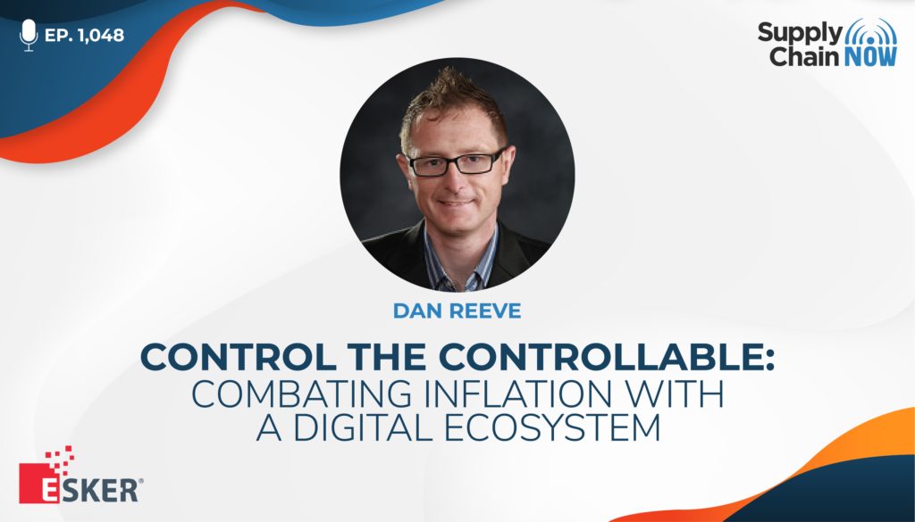 Inflation got you down? It’s time to get proactive—and control the controllable. How well can your team manage invoices, analyze cash flow and communicate with suppliers? It might be time for a stronger digital ecosystem. Tune in to hear Dan Reeve of Esker, Inc. share his recommendations for supply chain leaders looking to combat the negative impacts of inflation and become more agile in the face of disruption with Scott and Greg. Find out why an economic downturn is the perfect time to innovate, how automation can increase customer service levels and free up staff and what you can do right now to protect your company’s future in the year ahead.