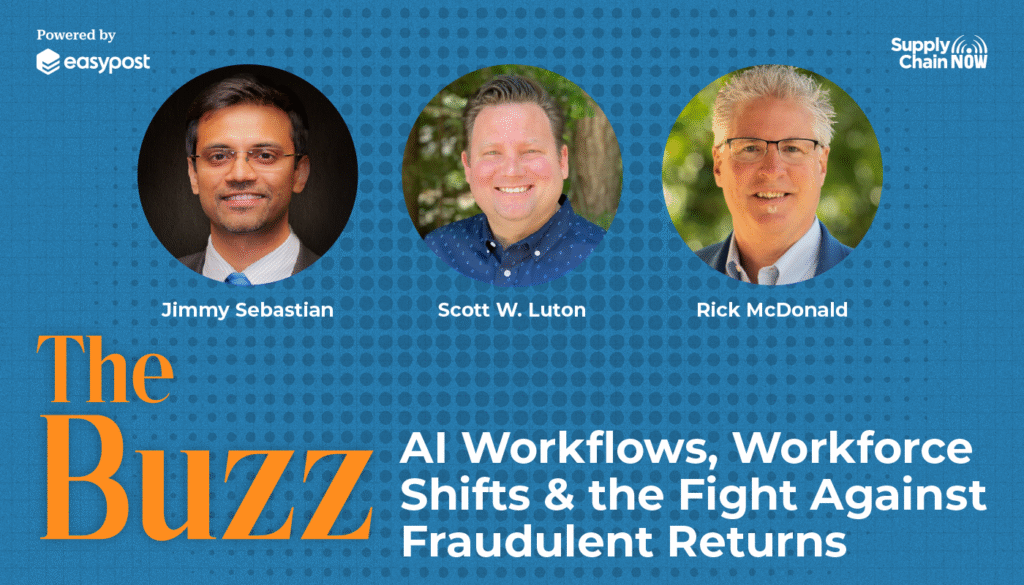 Today on Supply Chain Now, we explore how supply chain leaders are balancing powerful new technologies with the human expertise required to make them work. Featuring insights from Jimmy Sebastian on FourKites’ AI platform Loft, and what it means for real-world operations. Welcome to The Buzz, powered by EasyPost! Hosts Scott Luton and Rick McDonald unpack the growing convergence of AI automation and workforce strategy across the supply chain landscape. From faster workflow deployment and operational agility to the evolving labor pipeline and the surge in returns fraud, this conversation highlights why success today depends on both smarter tools and stronger people strategies. The discussion emphasizes that digital transformation isn’t replacing humans, it’s redefining how organizations empower them. What you’ll learn by tuning in: How AI workflow platforms are accelerating implementation and operational responsiveness Why human capability building is just as critical as technology investment What Gen Z’s rising interest in skilled trades means for future workforce planning The increasing business impact of fraudulent returns and how technology can help combat it Practical ways leaders can align automation with talent strategy to build resilience If you’re a supply chain, operations, or technology leader trying to scale automation without losing the…