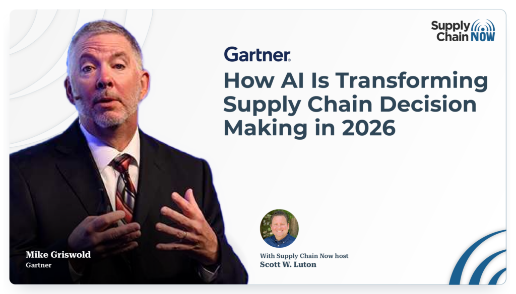 Global supply chains are at an inflection point as geopolitical uncertainty collides with rapid AI advancement and rising performance expectations. Leaders must decide when to invest, where to modernize, and how to stay ahead. In this episode of Supply Chain Now, Scott Luton is joined by Mike Griswold, Vice President Analyst at Gartner, to reflect on insights from Manifest 2026 and the evolving role of supply chain leadership. Together, they explore practical AI adoption, the growing importance of augmentation over automation, and how supply chains are stepping into more strategic, decision-shaping roles. Scott and Mike discuss the shift from AI experimentation to real-world use cases that solve specific business problems. They emphasize the importance of integrating technology with strong processes, particularly in Sales and Operations Planning, and maintaining clarity between planning and execution. The conversation concludes with perspectives on investment timing, competitive advantage, and how leaders can confidently navigate uncertainty while building stronger, more resilient supply chains. This episode is hosted by Scott Luton, and produced by Trisha Cordes, Joshua Miranda, and Amanda Luton. Additional Links & Resources Check out all the great resources and information mentioned during the show: Connect with Mike Griswold Learn more about Gartner…