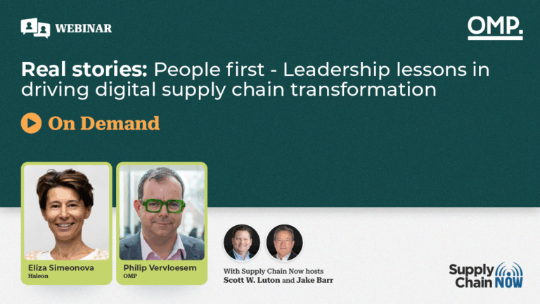 Hosted by Scott Luton and Jake Barr, this conversation brought together two powerhouse leaders: Eliza Simeonova, Quality Supply Chain Operations Officer at Haleon, and Philip Vervloesem, Chief Commercial & Markets Officer at OMP. Together, they tackled one of the most pressing challenges of our time—how to lead meaningful, people-centered transformation in an age increasingly defined by AI.