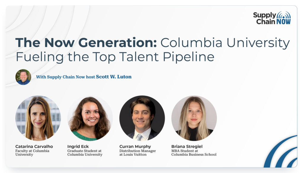 In this episode of Supply Chain Now and ongoing Now Generation series, Scott W. Luton is joined by Professor Catarina Carvalho, faculty member at Columbia University and Associate Principal at Arup, alongside Briana Stregiel from Columbia Business School, Curran Murphy, Distribution Planning Manager at Louis Vuitton, and Ingrid Eck, Graduate Student, M.S. in Sustainability Management at Columbia University. Together, they share how the next wave of supply chain leaders is already tackling complex challenges across sustainability, data, and global operations.