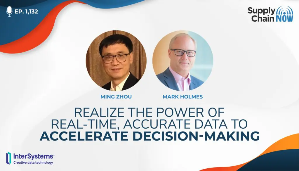 Logistics congestion, geopolitical tensions, labor shortages, and increasing operational costs continue to put pressure on supply chain organizations. These unprecedented challenges have exposed the fragility of supply chain interdependencies and highlighted the importance of fast, informed decision-making in supply chains across all sectors, from pharmaceutical to FMCG. In a sector where unexpected global events or natural disasters can have huge implications, accelerating decision-making by using real-time, accurate data is a vital capability and one that organizations must prioritize. Mark Holmes is a Senior Advisor in Supply Chain at InterSystems and Ming Zhou is their Head of Supply Chain. They each have industry experience from a broad range of companies including Tyson Foods, Ferrero Roche, TJX Companies, Hard Rock Café, Albertsons, GE, and IBM. In this episode, Mark and Ming join hosts Scott Luton and Greg White to talk about: • The biggest data-driven challenges facing supply chain operations today • Three ways leading organizations are leveraging real-time data optimized decision-making to empower their team members and improve overall supply chain orchestration • The importance of taking an outcome-based approach to strategic planning and decision making