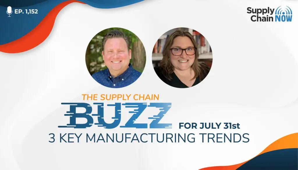 The Supply Chain Buzz is Supply Chain Now’s regular Monday livestream, held at 12n ET each week. This show focuses on some of the leading stories from global supply chain and global business, always with special guests – the most important of which is the live audience! This week’s edition of The Buzz was a Digital Transformers edition, and it featured hosts Scott Luton and Kevin L. Jackson. They opened the conversation – and kicked off the second half of 2023 – by talking about the most recent edition of ‘With That Said,’ the Supply Chain Now LinkedIn newsletter, 22,000 subscribers strong. In this livestream, created in collaboration with a live Supply Chain Now audience, Scott and Kevin discussed: • The latest developments in the ongoing contract negotiation between UPS and the International Brotherhood of Teamsters • China’s recent decision to restrict exports of gallium and germanium, minerals that are used in products like semiconductors, solar panels, and missile systems • The current state of digital supply chain transformation and adoption • The important role that digital transformation can play in the employee experience