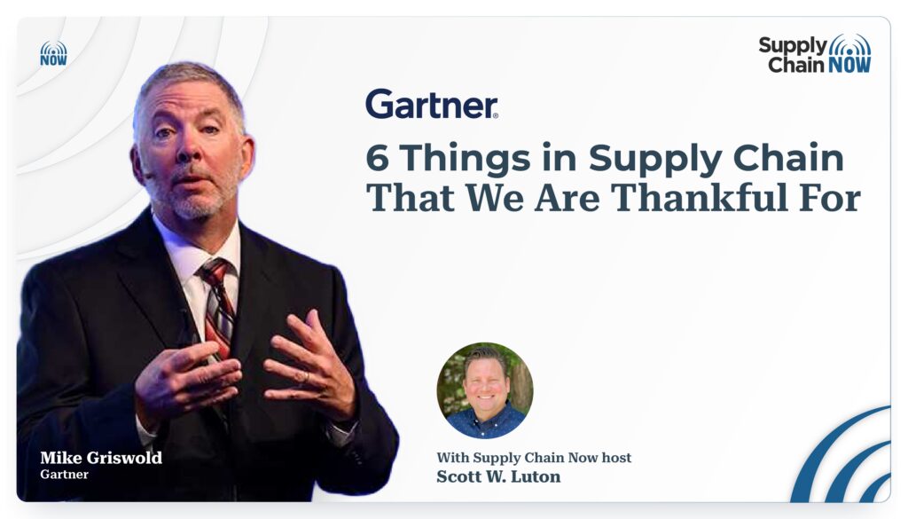 In this episode of Supply Chain Now, Scott Luton welcomes Mike Griswold, Vice President Analyst at Gartner, for a conversation on the future of supply chains. Mike explains why reverse logistics and returns management are now critical, how AI-powered demand sensing improves agility, and why organizations must treat reverse supply chains with the same discipline as forward ones. He also shares predictions on AI certification in hiring and the risk of losing soft skills as technology takes on a bigger role. Using football as a lens, Mike highlights resilience from the Buffalo Bills, core focus from the Ravens, and orchestration from the Patriots—lessons supply chain leaders can apply directly. He also previews Gartner’s Planning Summits, where strategy meets hands-on execution. From tackling fraud in returns to preparing talent for an AI-driven future, this episode offers clear takeaways for balancing technology, people, and process. This episode is hosted by Scott Luton, and produced by Trisha Cordes, Joshua Miranda, and Amanda Luton. Additional Links & Resources Check out all the great resources and information mentioned during the show: Connect with Mike Griswold Learn more about Gartner Learn more about our hosts Want more Supply Chain Now? We know you can’t…