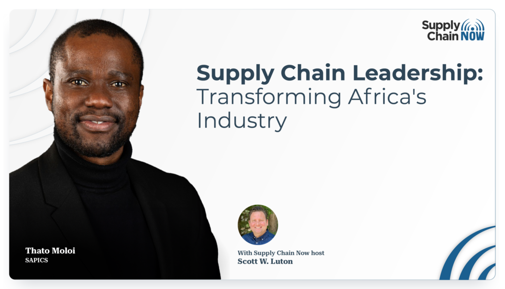 [00:01:30] Scott W. Luton: He’s one of our faves. Thato Moloi has spent over 20 years in global supply chain, especially in a variety of leadership roles in the logistics sector. Currently, he’s serving in a management role in the world of contract logistics. But for several years now, Tado has served as president of SAPICS, a supply chain management community that is on a mission to elevate, educate, and empower professionals and organizations across Africa and beyond.